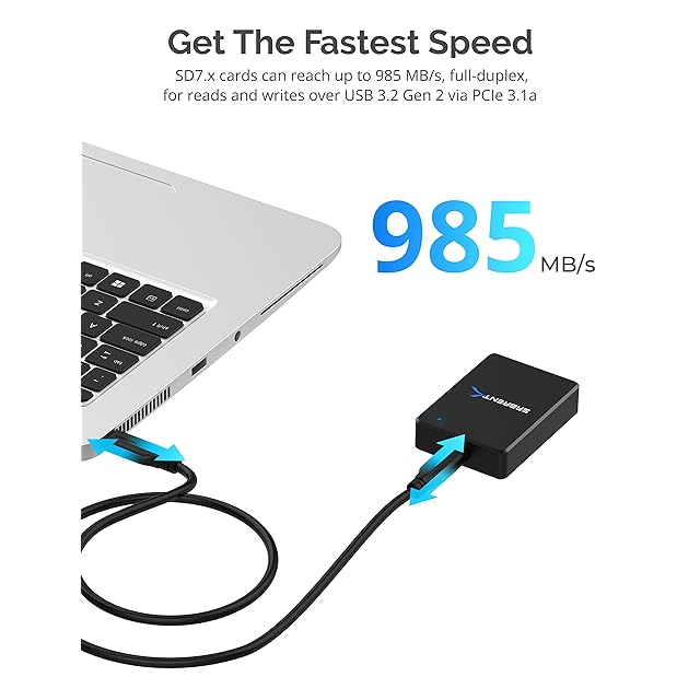 高性能:SD7.xカードは、PCIe 3.1a経由でUSB 3.2 Gen2での読み取りと書き込みの全二重で最大985MB/秒を達成可能。このアダプタは、高解像度の写真やビデオを転送する際に、速度が低下することはありません。