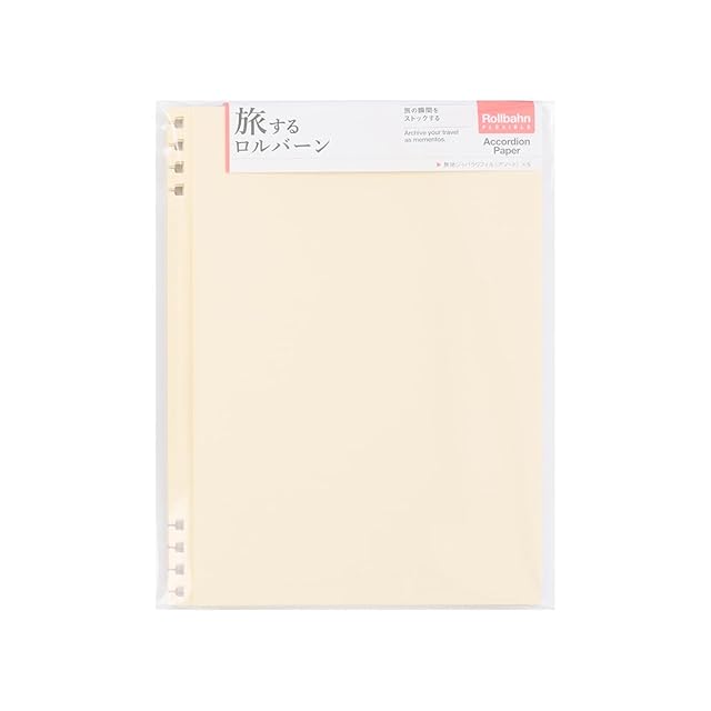 【2色・計5枚入り】1枚で広く使えて見渡せるジャバラ折りペーパー</br></br> 旅の瞬間をストックできる「旅するロルバーン」のカバーのみにセットしていたジャバラリフィルが追加できる計5枚セットのリフィルとして登場しました。</br></br> ジャバラ折りで広がる表裏6面のクリームのリフィルが3枚、ライトグレーのリフィルが2枚入っています。</br>厚みのある紙で、薄いフライヤーやパンフレットなど紙物を大胆に貼ることができるアイテム。</br>地図を書いて、各地のお気に入りスポットについて書き留めるのもおすすめです。</br></br> 1パッケージにつき、5枚入り。サイズは、書き込みスペースが大きいA5サイズ。</br>「旅するロルバーン」のリフィルは、他に方眼メモの片面がポケット仕様になっている方眼ポケットリフィル、</br>紙物を貼る、スタンプを押すなど、スクラップブックのように使用できる3色アソートの無地リフィルもあります。</br>数種類のリフィルを常備して、用途に合わせて書き分けるのがおすすめ。一回り小さいLサイズ用もあります。</br></br> ※リフィルは薄い紙物などを収納、貼り付けることを想定しています。重量のある物を収納、貼り付けるとリフィルに負荷がかかり、破れる原因となります。