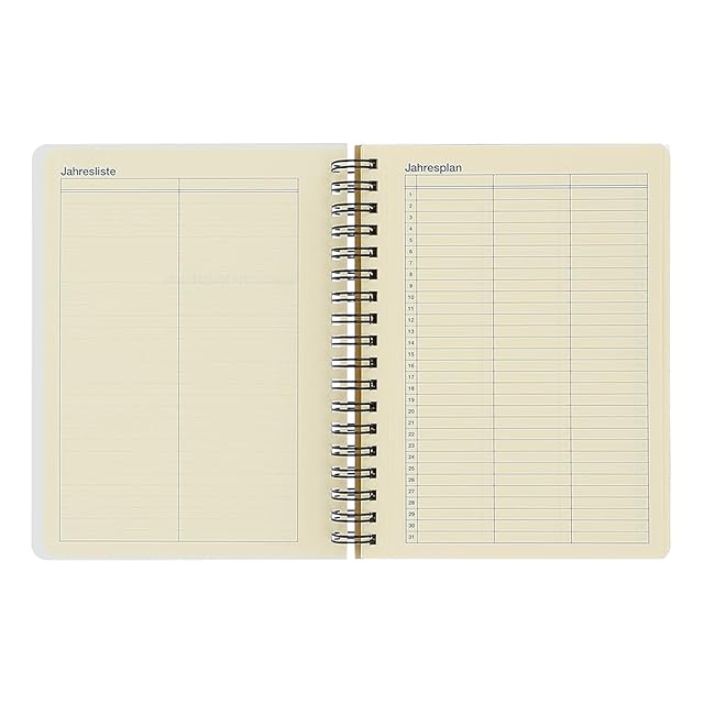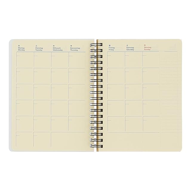 仕様:○中表紙(1ページ)、リスト(1ページ)、日付なしイヤースケジュール(1ページ、ジャバラ1ページ)日付なしマンスリー(24ページ)、日付なしブロック(105ページ)、メモ(72ページ)/○5mm方眼 /○切離しミシン目付き/○PPポケット5枚付き