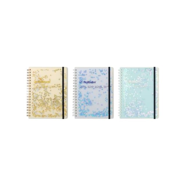 スパンコールを表紙に入れた、遊び心満点のポップなロルバーン ポケット付メモ(Lサイズ)</br></br> 星型や楕円型のスパンコールを表紙に入れたロルバーン ポケット付メモが登場しました。</br>光に反射してきらめくスパンコールが華やかに輝きます。</br>スモークがかった透けすぎないマットな質感の表紙と落ち着いた色選びのスパンコールを組み合わせ、甘すぎず、大人にも似合う佇まいがポイントです。</br></br> クリーム、ライトブルー、ミントの全3色。クリームは「光」をテーマにゴールド、シルバーのスパンコールを合わせています。ライトブルーには粒感のあるスパンコールを選び、揺れる水面のような輝きが魅力。ミントは、ピンクやパープル、ライトグリーンのカラフルなスパンコールをミックスし、パステルカラーを基調としたかわいらしい印象に仕上げました。 サイズは、B6に近い大きさで人気のLサイズ。</br>中面は、通常のロルバーン ポケット付メモと同様に、全ページミシン目付きの5mm方眼。</br>紙はクリーム色の上質紙で、インクのにじみや裏写りも気になりません。巻末にはクリアポケットが付いています。思わず手に取りたくなる、遊び心満点のポップな1冊。ギフトもおすすめです。