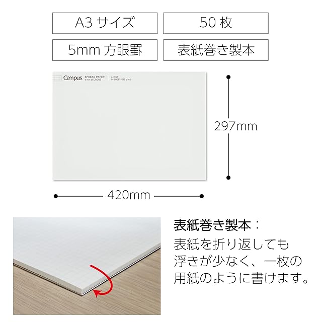 コクヨ(KOKUYO) レポート用紙 A3 キャンパス スプレッドペーパー 50枚 5mm方眼罫 レ-SP705S5
