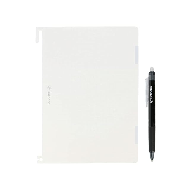 【素早く消せて何度でも使える、ロルバーン専用のホワイトボード(A5サイズ/ペンセット)】</br> BUTTERFLYBOARD(バタフライボード)社と共同開発したロルバーン専用のホワイトボードと、</br> 0.5mmフリクションペンのセットです。ロルバーン ポケット付メモやロルバーン フレキシブルに取り付けて携帯できます。</br> クラウドファンディングから人気に火が付いた「BUTTERFLYBOARD」がデルフォニックスの「ロルバーン」とコラボレーション。</br> 素早く消せて何度でも使えるホワイトボードとして、“書く”、“消す”ことはもちろん“貼る”、“広げる”、“共有する”という機能を備えています。</br> 折りたたまれたページを広げて使うこともでき、ページ同士はマグネットで連結されているため、</br> 引っ張るだけでページが簡単に分離。 また、近づけるだけで 隙間なく連結します。</br> マグネットにより、スチール製品に貼ることができ、貼るメモとしても使用できます。</br> 表面は、反射や写り込みを抑えるマットな仕上がり。スマートフォン等のスキャンアプリを使用したデジタル保存にも適しています。</br> ハンディホワイトボードを持ち運ぶ感覚で、メモページに書く前の下書きやちょっとしたメモ、</br> 分離させてTO DOメモといった使用もおすすめ。ロルバーンをもっと便利に使うためのパーツです。</br> ロルバーンのロゴが入った、このセット限定の0.5mmフリクションペンと一緒にお使いください。</br> 「ロルバーン ポケット付メモA5」、「ロルバーン フレキシブルA5」、「ロルバーンダイアリーA5」に対応。</br> リングに上部の爪を引っ掛け、下部の穴にもセットして固定します。</br> 本体は、ロルバーンを象徴するロルバーンアイテムのメモページと同じ5mm方眼デザイン。</br> ロルバーンロゴもプリントされ、コラボレーションならではのアイテムに仕上がっています。</br> A4書類を二つ折りにしたサイズのA5サイズのほか、一回り小さなLサイズもあります。</br> ※付属のフリクションペン、一般的な消せるボールペン以外は使用しないでください</br> ※文字を消す際は、付属のフリクションペン、消せるボールペンの消去用ラバーで軽くこすってください</br> ※ページ全体を消す際は、ウェットティッシュ等をご使用ください</br> ※筆圧が強いとボードに筆記跡が残る場合があります</br> ※直射日光の当たる場所や、高温になる場所に置かないでください</br> ※磁気に影響を受けるものに近づけないでください</br> ※マグネット固定ラベルを剥がさないでください</br> ※幼児が使用する場合は、保護者と一緒に使用してください</br> <BUTTERFLYBOARD></br> 素早く消せて何度でも使えるホワイトボード。特許技術スナップ・ バインディング・テクノロジーにより、“書く、消す、貼る、広げる、 共有する”という機能を高次元で融合した、デジタル時代の全く 新しいツールです。BUTTERFLYBOARD社と共同開発し、“記録する、保存する”というメモ機能を持つ ロルバーンシリーズと掛け合わせ、デジタル×アナログそれぞれの持ち味を活かした「Rollbahn × BUTTERFLYBOARD」が実現しました。
