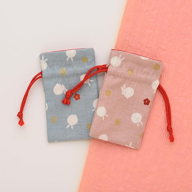 ひらの屋 お守り袋 巾着 パワーストーン 持ち塩 豆うさぎ 可愛い 出雲大社表参道 【水色/桃色】 (水色)