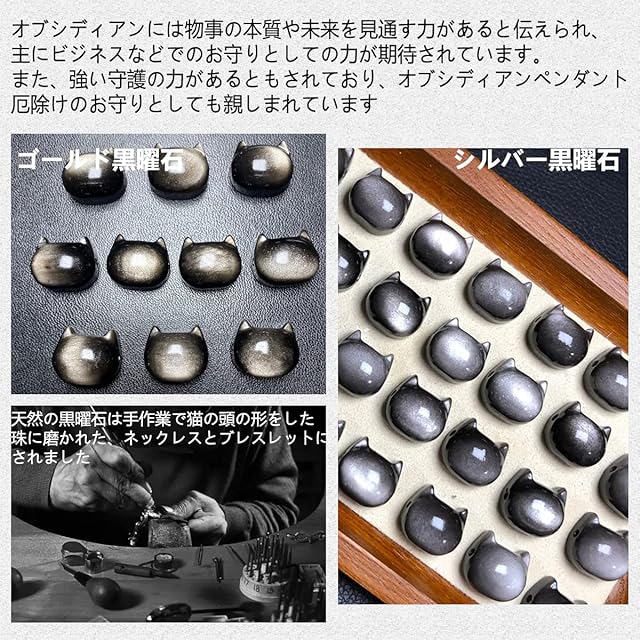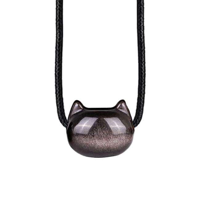 ペンダント:オブシディアンには物事の本質や未来を見通す力があると伝えられ、否定的なエネルギーを吸収し、 感情のバランスを保ちます。 性格の激しい人たちによる悪意から守り、危険から身を守ってくれるパワーがあると言われています。魔除け・厄除けのお守りとしても親しまれています。かわいい猫のイメージも安心感をもたらすことができます。