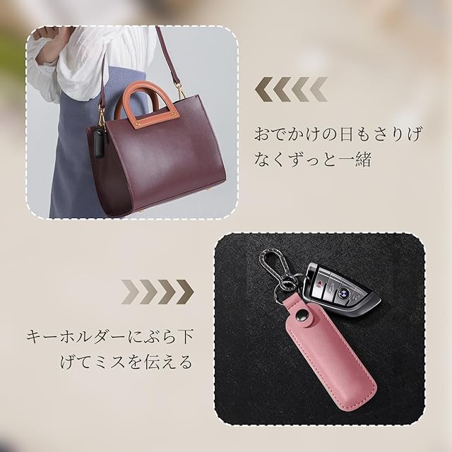 【おでかけの日もさりげなくずっと一緒】キーホルダー型はバッグに取り付けてビジネスにも普段使いにも使えるので、いつでもどこでも気兼ねなく一緒に出かけられる。