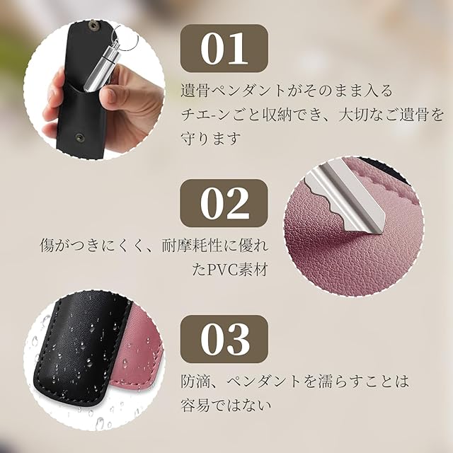 【カプセル+革ケース】二重構造で、傷、汚れ、落下の心配がなく、大切な遺品を守ります。