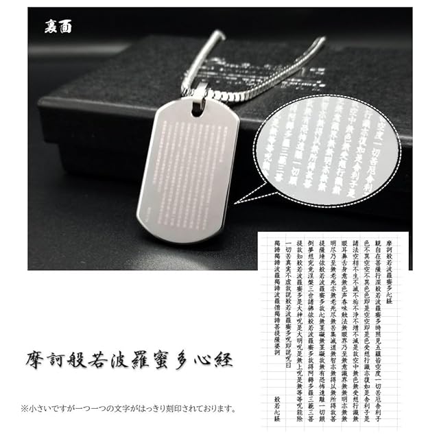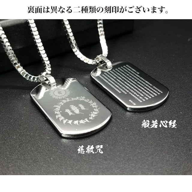 [Spirit316] メンズネックレス SPTBD3 不動明王 お守りペンダント 超硬素材タングステン 角丸加工 鏡面仕上げ レザーマーキング (諸願成就 不動尊 シルエット版) (不動明王&般若心経)