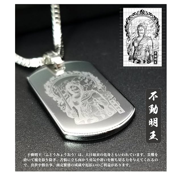商品名:[Spirit316] メンズネックレス SPTBD3 不動明王 お守りペンダント 超硬素材タングステン 角丸加工 鏡面仕上げ レザーマーキング (諸願成就 不動尊 シルエット版) (不動明王&般若心経)