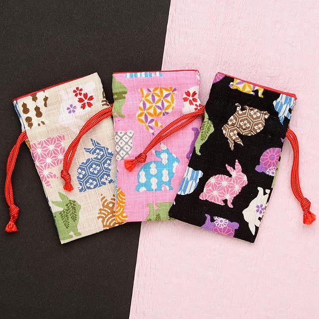 ひらの屋 お守り袋 巾着 パワーストーン 持ち塩 夢うさぎ 可愛い 出雲大社 【クリーム/桃/黒】 (桃)