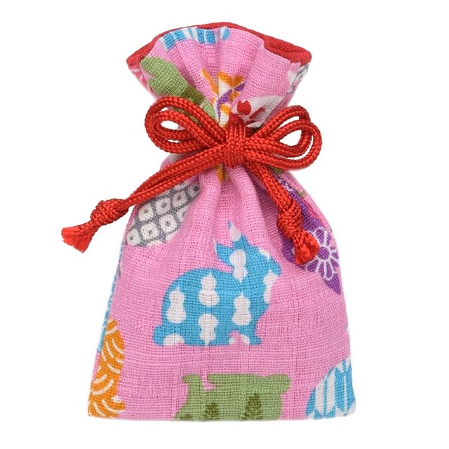 商品名:ひらの屋 お守り袋 巾着 パワーストーン 持ち塩 夢うさぎ 可愛い 出雲大社 【クリーム/桃/黒】 (桃)