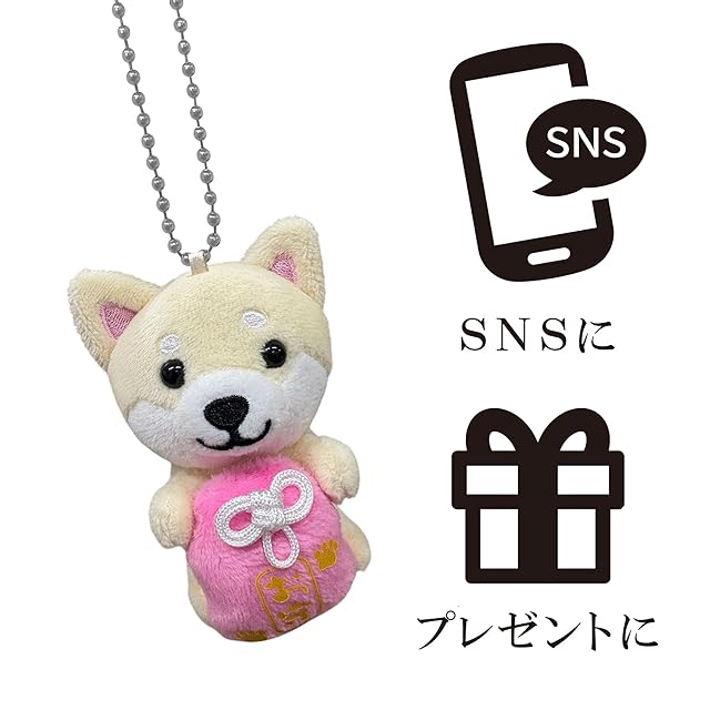 商品名:[LamPlanning] 【Series-10】旅するマメしば キーホルダー マスコット ボールチェーン バックチャーム かわいい ふわふわ 犬 柴犬 豆柴 癒し (お守り ピンク)