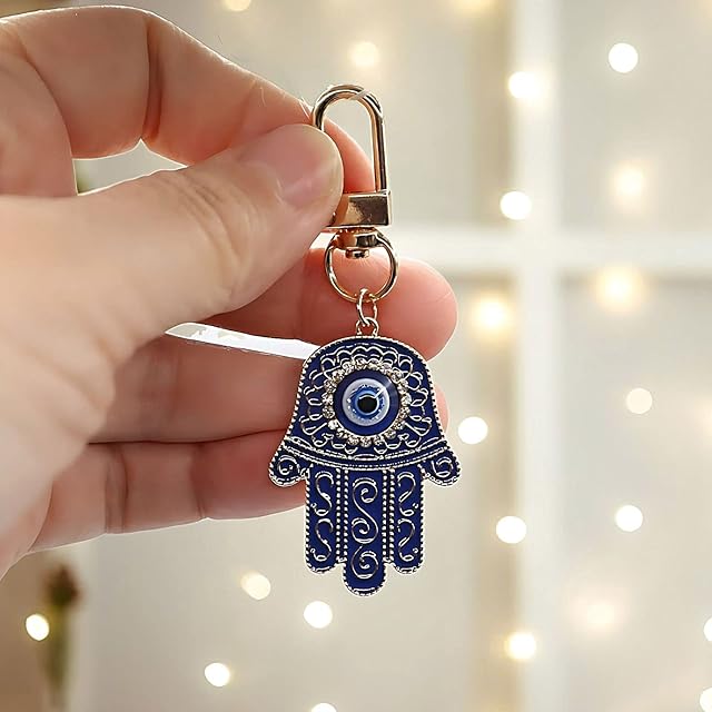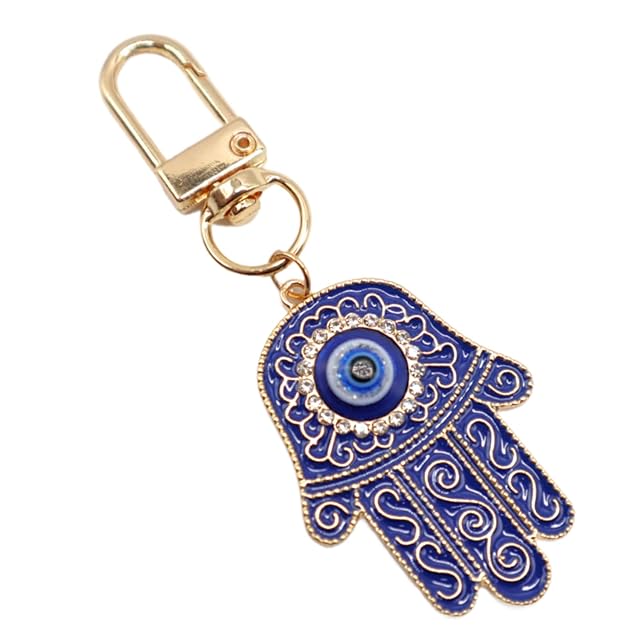 MyfavoriteK ハムサハンドキーチェーン トルコイーブルアイキーチェーン 幸運のチャーム ハムサオーナメント 車の保護用 お守り, ブルー, Medium