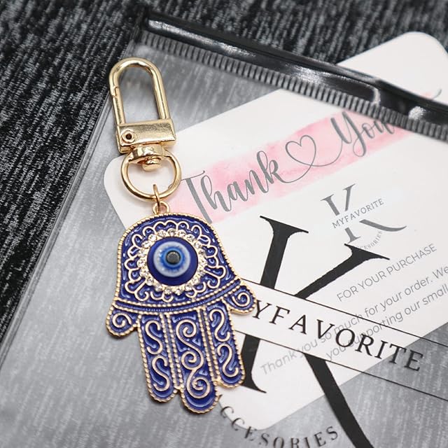 商品名:MyfavoriteK ハムサハンドキーチェーン トルコイーブルアイキーチェーン 幸運のチャーム ハムサオーナメント 車の保護用 お守り, ブルー, Medium