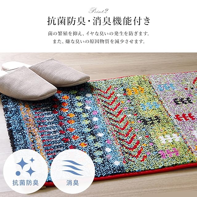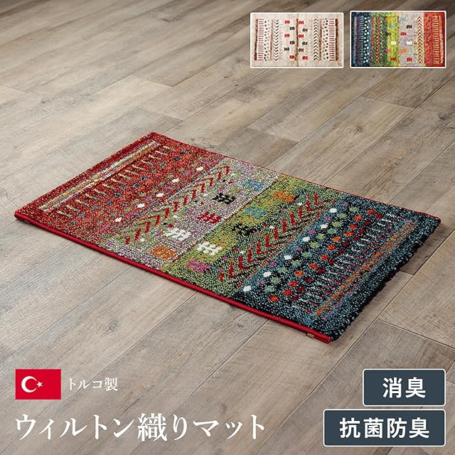 商品名:イケヒコ 玄関 選べる マット 長方形 単品 マリア グリーン 約80×140cm 厚み 約11mm トルコ製 へたりにくい 耐久性 弾力性 抗菌防臭 消臭 ギャベ柄 エレガント 洗濯不可 おしゃれ ふわふわ #1321250120101