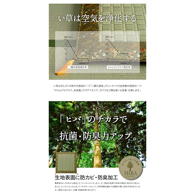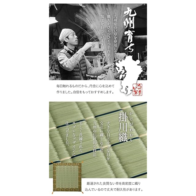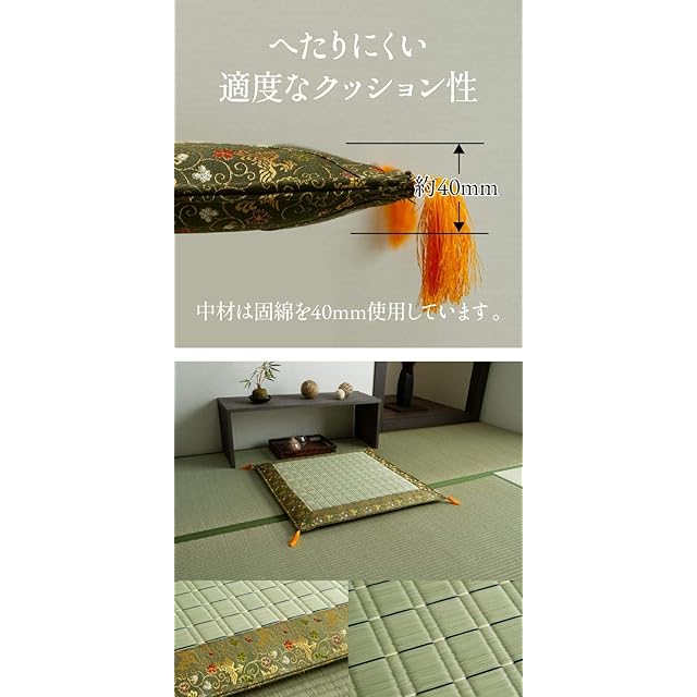 素材:側地=い草(九州産) ※掛川織 ヘリ=ポリエステル95%、レーヨン5% 中材=ポリエステル100%【固綿40mm】