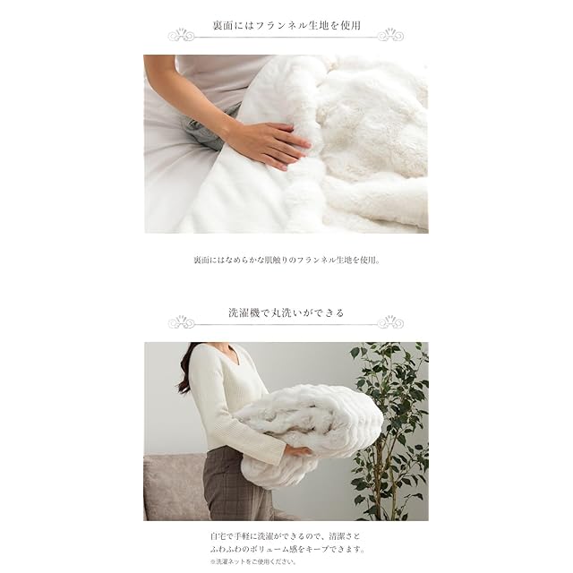 【洗濯機で丸洗いOK】自宅で手軽に洗濯ができるので、清潔さとふわふわのボリューム感をキープできます。オフシーズンには毛布をしまっておけるケース付きで、収納も困りません。