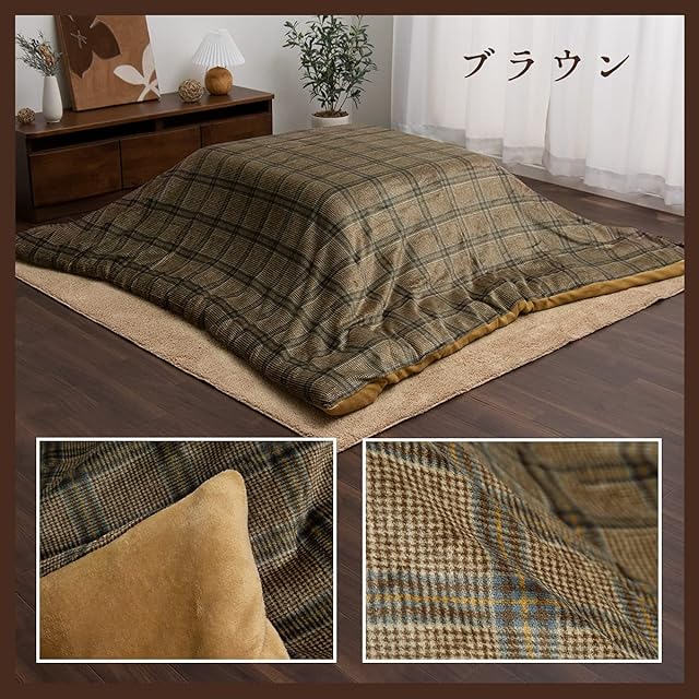 イケヒコ・コーポレーション こたつ布団 カバー カリス 約195×195cm ブラウン カジュアル チェック柄 撥水 洗える #5576029