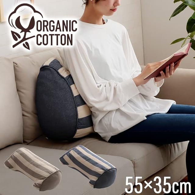 商品名:イケヒコ クッション オーガニックコットン 変形 フロー よりかかり ネイビー 約55×35×25cm 手洗い インド綿 ボーダー 日本製 通年 オールシーズン #1210880191001