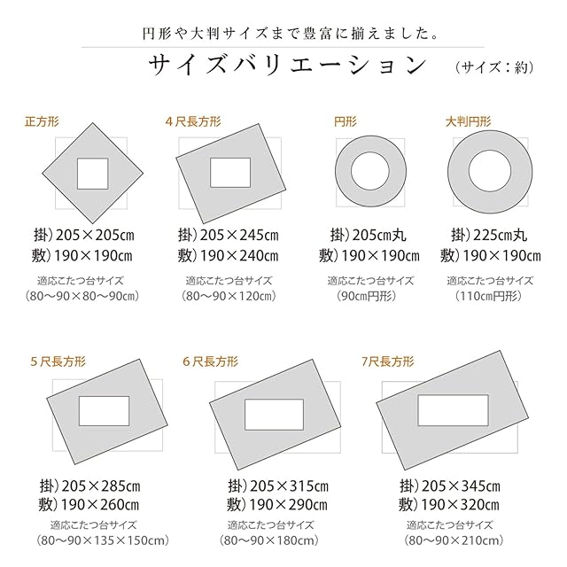 適応タイプ:80~90×135×150cm幅のこたつ台に適応