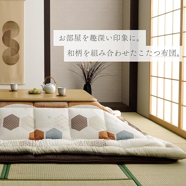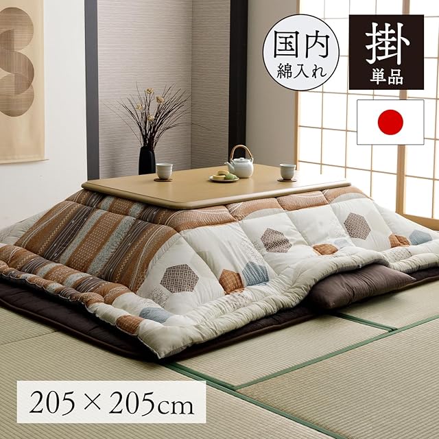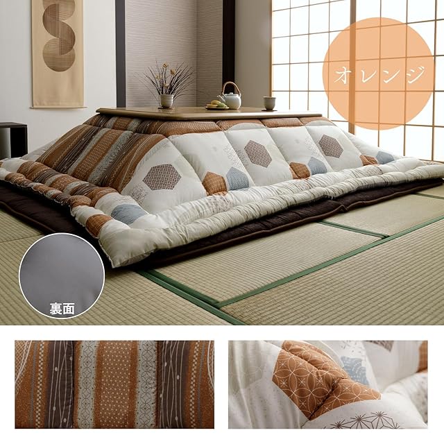 イケヒコ こたつ布団 正方形 掛布団 日本製 くるみ 約205×205cm オレンジ ふっくら ボリューム 洗える 丸洗い おしゃれ 和柄 和モダン #1152040200103