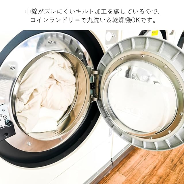 【コインランドリーで丸洗い&乾燥OK】中綿がズレにくいキルト加工を施しているので、コインランドリーで丸洗い&乾燥機OKです。※洗濯ネットを使用し、品質表示ラベルのお手入れ方法に沿って正しくお洗濯してください。