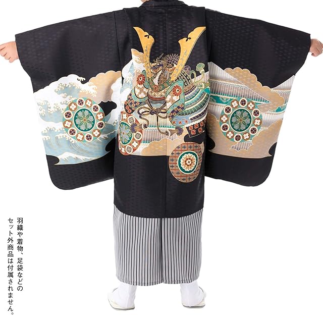 商品名:[KYOETSU] [キョウエツ] 袴小物セット 七五三用 5歳用 7点セット(袴、角帯、懐剣、雪駄、羽織紐、お守り、白扇子) ボーイズ (袴 紐下60cm, 縞黒)