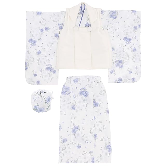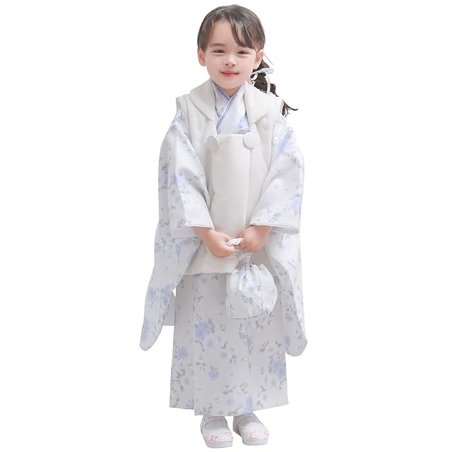 商品名:[KYOETSU] [キョウエツ] 自宅で簡単着付け 七五三 3歳 女の子 着物 セパレート 二部式 セット 被布 小物 フルセット 753 4点セット くすみ (7.淡雪の桜日和, 90-100cm)