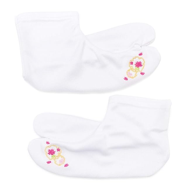 白足袋のつま先に可愛いらしい和柄のワンポイント刺繍をあしらった足袋カバーです。晴れ着の足元まで華やかに見せられます。刺繍の柄は5種類からお選びいただけます。