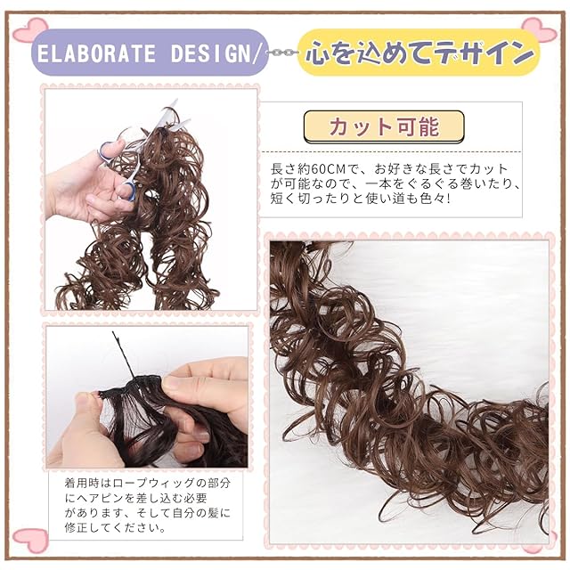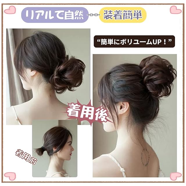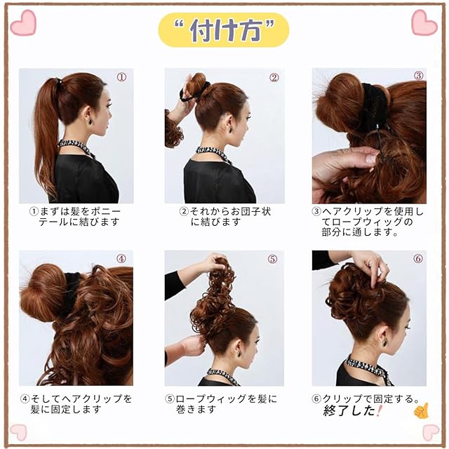 「装着簡単」ボリュームが欲しい部分にロープウィッグをくっつけるだけで、簡単にかわいいヘアアレンジができちゃいます。巻きつけてピンで留めるだけのロープウィッグは誰でも簡単につけることができます。地毛を使ってのヘアアレンジが苦手な人でも、ロープウィッグなら憧れのアレンジスタイルに!かわいいお団子スタイルも一瞬でなれちゃいます。