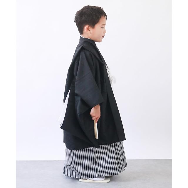 [KYOETSU] [キョウエツ] 七五三 5歳 男の子 着物 セット 羽織 袴 フルセット 753 くすみ (1.ブラック, 3歳サイズ)