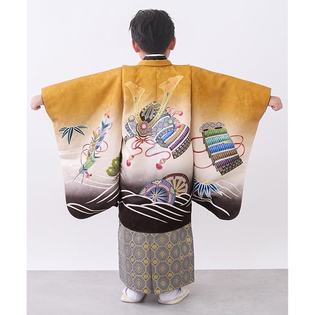 商品名:[KYOETSU] [キョウエツ] 七五三 5歳 男の子 着物 セット 羽織 袴 フルセット 753 絵羽 A ((15)兜-金茶+藍鼠)