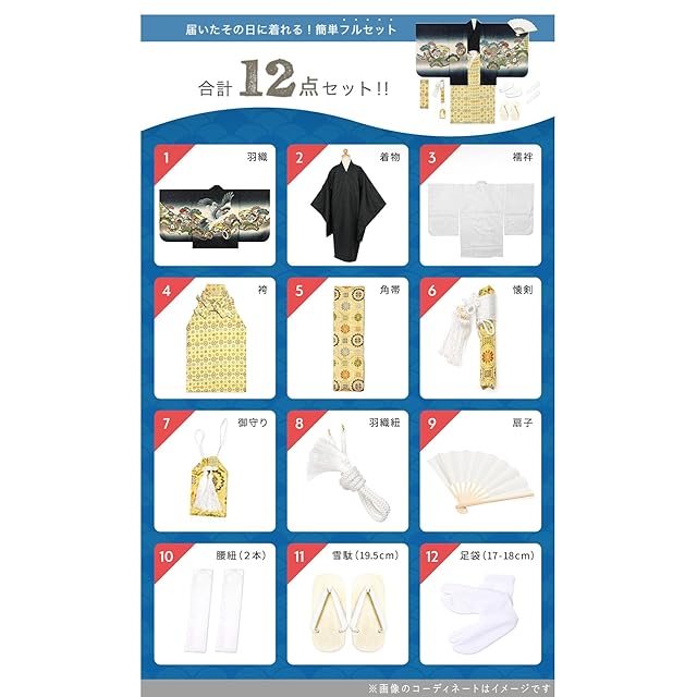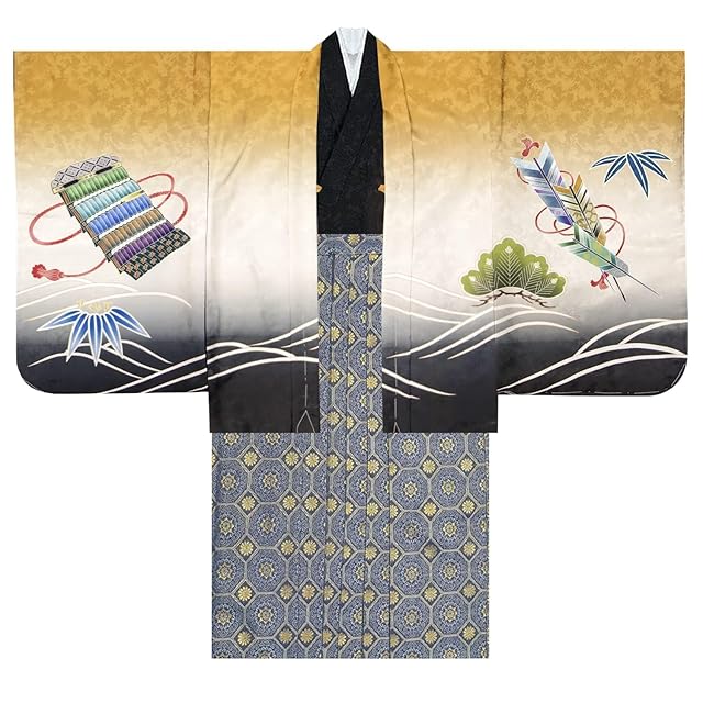 [セット内容]:着物/羽織/袴(行灯タイプ)/襦袢/履物/角帯/扇子/懐剣/羽織紐/お守り/足袋/腰紐2本