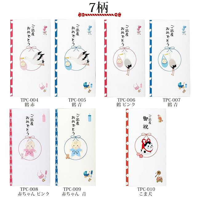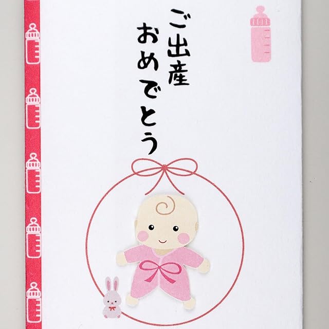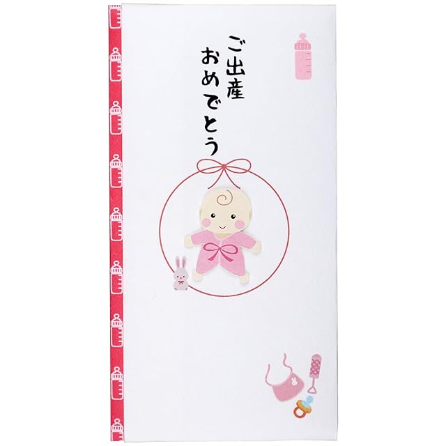 伊予結納センター 金封 TPCシリーズ ペーパーカットマスコット付祝儀袋 ご出産おめでとう 赤ちゃん ピンク 約9.5×17.8cm 日本製 ホワイト TPC-008