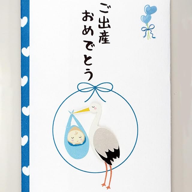 商品名:伊予結納センター 金封 TPCシリーズ ペーパーカットマスコット付祝儀袋 ご出産おめでとう 鶴 青 約9.5×17.8cm 日本製 ホワイト TPC-007