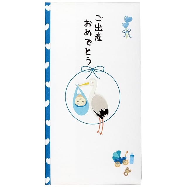 伊予結納センター 金封 TPCシリーズ ペーパーカットマスコット付祝儀袋 ご出産おめでとう 鶴 青 約9.5×17.8cm 日本製 ホワイト TPC-007