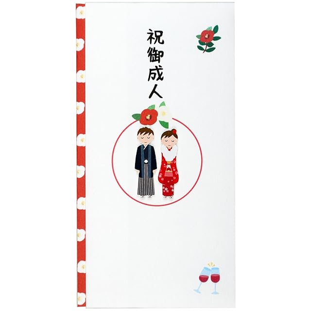伊予結納センター 金封 TPCシリーズ ペーパーカットマスコット付祝儀袋 祝御成人 約9.5×17.8cm 日本製 ホワイト TPC-030