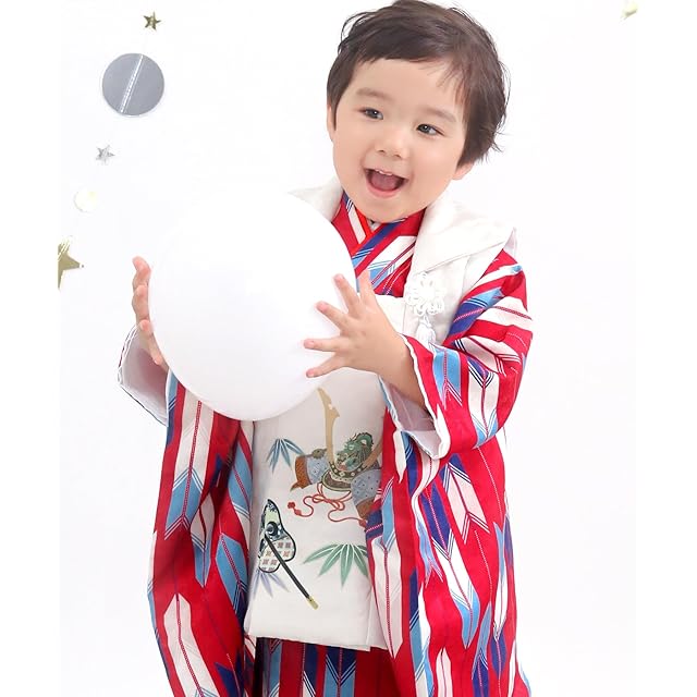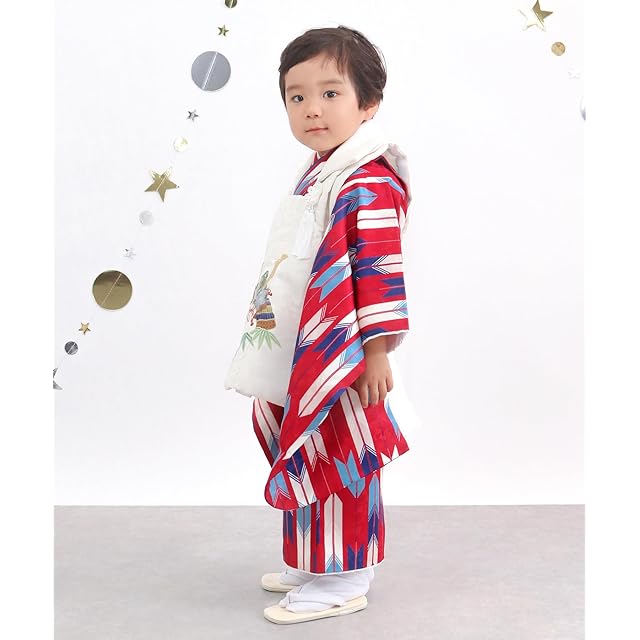 七五三の男の子の3歳のお祝いに。着付けに必要なものはすべて揃っているおしゃれな被布セットです。 【必要なものはすべて揃ったフルセット】被布コート・着物・襦袢・伊達衿(縫い付け済)・半衿(縫い付け済)・雪駄・白足袋・腰紐の8点セット。ご家庭でも簡単に着付けができるよう、説明書もお付けいたします。 【ポリエステル製でお手入れ簡単】扱いやすいポリエステル素材なので、汚れや食べこぼしを気にせず、安心してご着用いただけます。 【肩上げ・腰上げ済】子供の着物はこれからの成長を願って肩上げ・腰上げするのが通例です。3歳の標準サイズに合わせて寸法調整済なので、90cm~100cmくらいのお子様であればお直しなしでご着用いただけます。簡単にほどいていただけるので、ご家庭でお子様のサイズに合わせて調整いただくことも可能です。 [サイズ]着物身丈:76cm(腰上げ前 90cm) 着物裄丈:41cm(肩上げ前 47cm) 被布コート丈:50cm 着物袖巾:26cm 雪駄:18.0cm 足袋:15-16cm