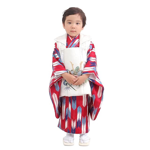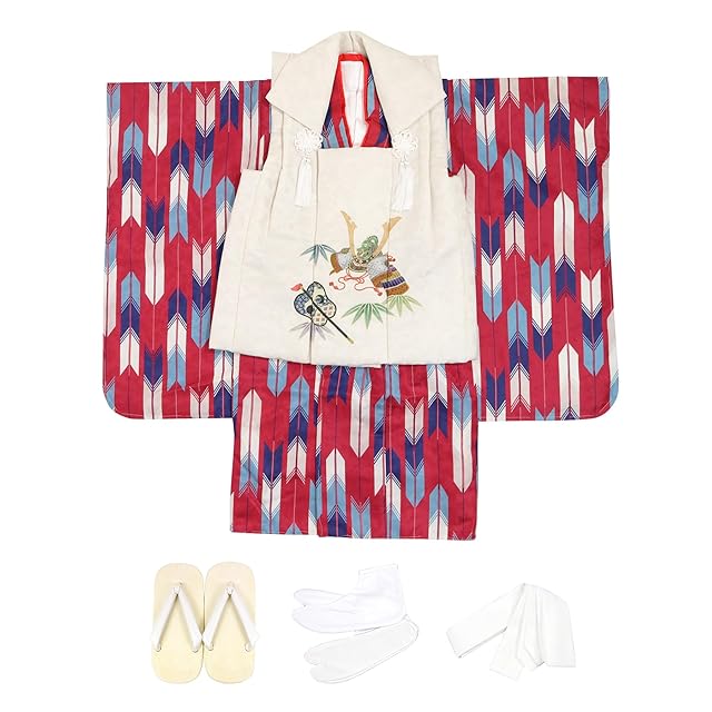 商品名:[KYOETSU] [キョウエツ] 七五三 3歳 着物 男の子 被布 フルセット しちごさん (10.緋矢と兜, 90-100cm)