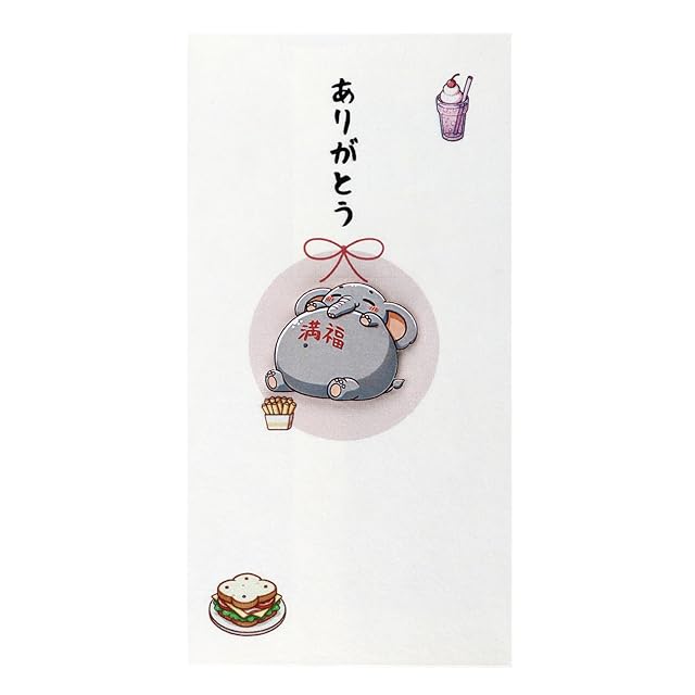 伊予結納センター 金封 FPCシリーズ ペーパーカットマスコット付 和紙封筒タイプ ありがとう 満福 ゾウ 約17.5×9cm 日本製 FPC-023