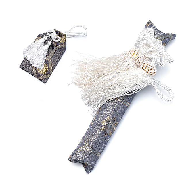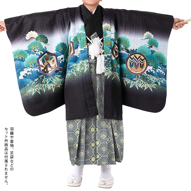 [KYOETSU] [キョウエツ] 袴小物セット 七五三用 5歳用 7点セット(袴、角帯、懐剣、雪駄、羽織紐、お守り、白扇子) ボーイズ (袴 紐下60cm, 藍鼠)