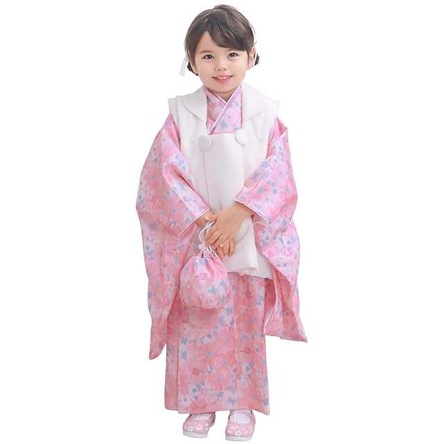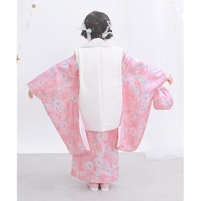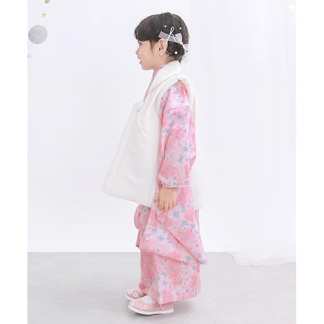 商品名:[KYOETSU] [キョウエツ] 自宅で簡単着付け 七五三 3歳 女の子 着物 セパレート 二部式 セット 被布 小物 フルセット 753 4点セット くすみ (12.桃霞の花綴り, 90-100cm)