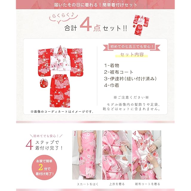3歳女の子の七五三お祝いに。 もっと簡単に着用できる二部式タイプ登場。 セパレートだから洋服感覚でサッと着られる!