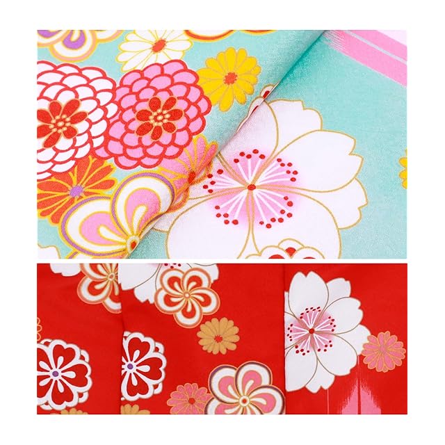 [KYOETSU] [キョウエツ] 自宅で簡単着付け 七五三 3歳 女の子 着物 セパレート 二部式 セット 被布 小物 フルセット 753 4点セット (4.蒼の夢咲き, 90-100cm)