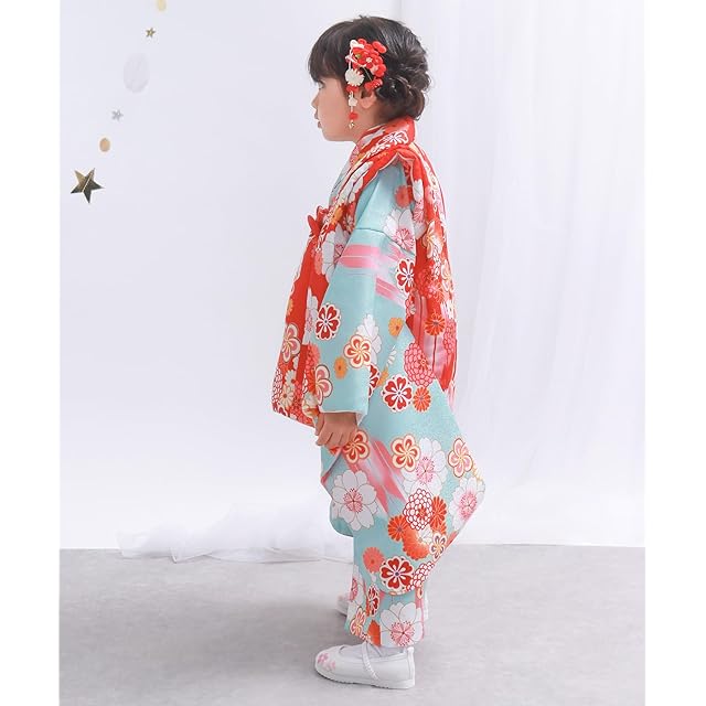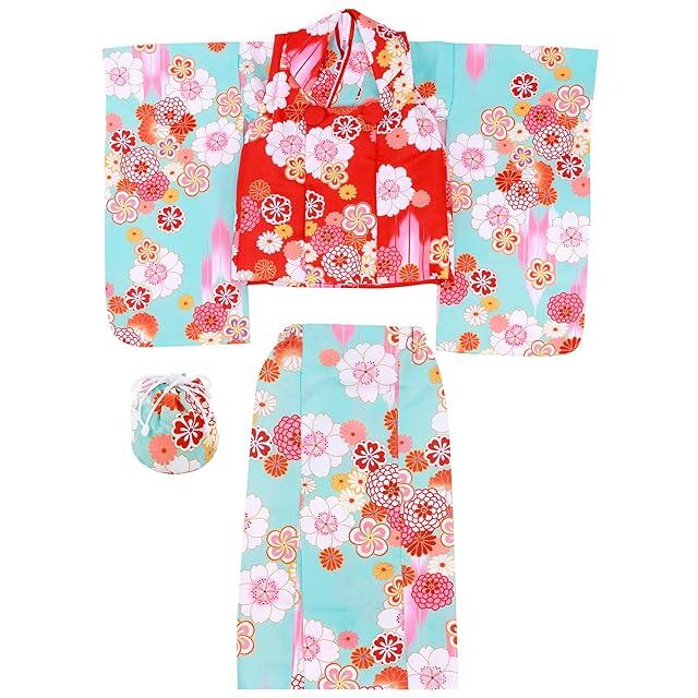 商品名:[KYOETSU] [キョウエツ] 自宅で簡単着付け 七五三 3歳 女の子 着物 セパレート 二部式 セット 被布 小物 フルセット 753 4点セット (4.蒼の夢咲き, 90-100cm)