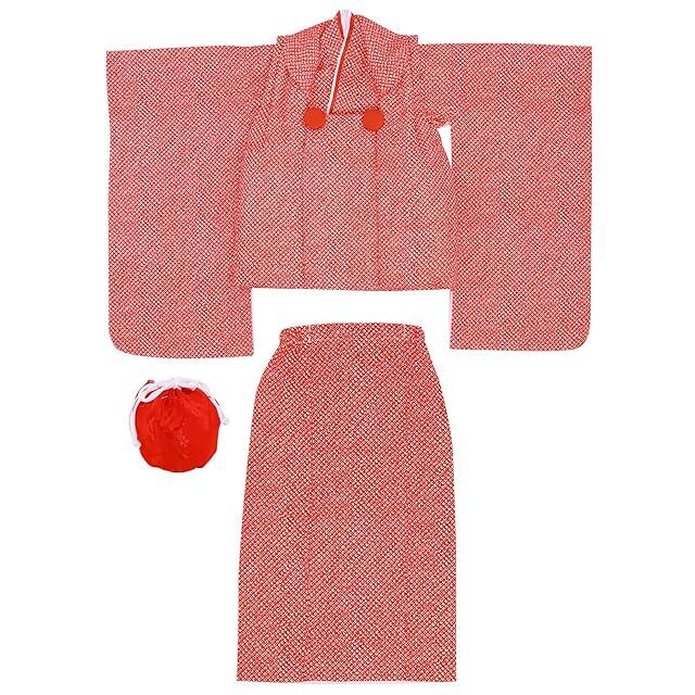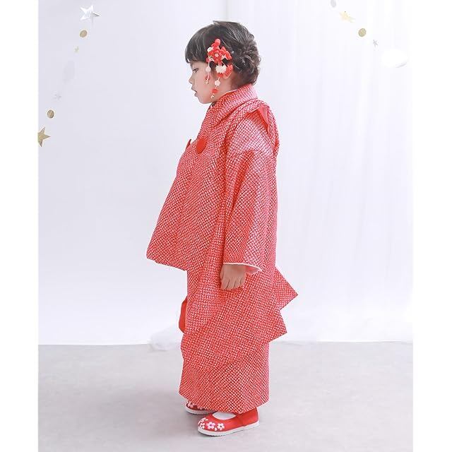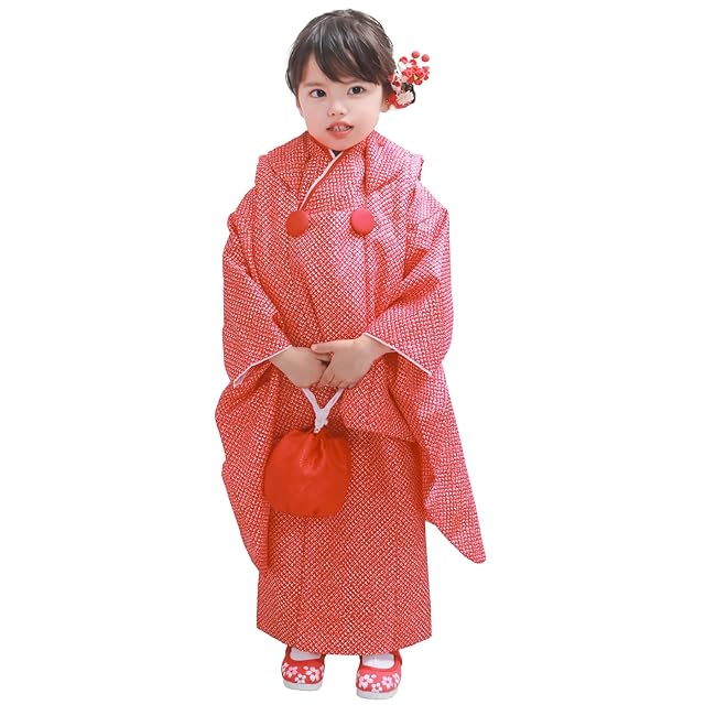 商品名:[KYOETSU] [キョウエツ] 自宅で簡単着付け 七五三 3歳 女の子 着物 セパレート 二部式 セット 被布 小物 フルセット 753 4点セット (6.疋田柄, 90-100cm)