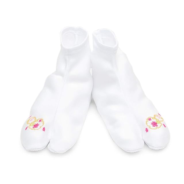 白足袋のつま先に可愛いらしい和柄のワンポイント刺繍をあしらった足袋カバーです。晴れ着の足元まで華やかに見せられます。刺繍の柄は5種類からお選びいただけます。