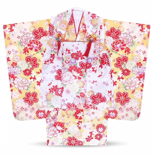 [セット内容]:被布/着物/伊達衿/長襦袢/髪飾り/巾着/草履/腰紐/足袋/専用化粧箱