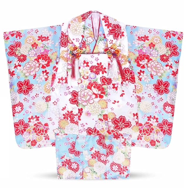 [セット内容]:被布/着物/伊達衿/長襦袢/髪飾り/巾着/草履/腰紐/足袋/専用化粧箱