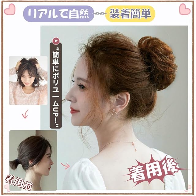 「装着簡単」ボリュームが欲しい部分にロープウィッグをくっつけるだけで、簡単にかわいいヘアアレンジができちゃいます。巻きつけてピンで留めるだけのロープウィッグは誰でも簡単につけることができます。地毛を使ってのヘアアレンジが苦手な人でも、ロープウィッグなら憧れのアレンジスタイルに!かわいいお団子スタイルも一瞬でなれちゃいます。