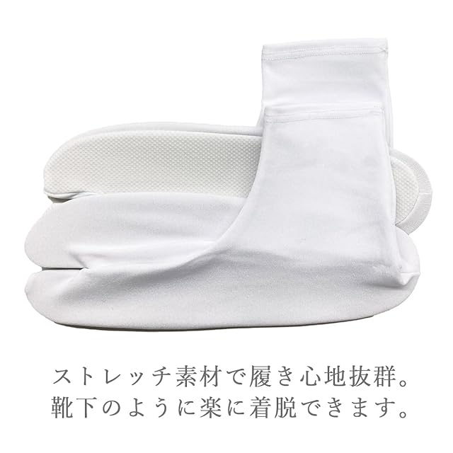 <b>らくらく簡単に履きやすいストレッチ足袋</b><br>伸縮性に富んだ程よいフィット感と、上質なポリエステルで肌触りがよく、長時間のご使用もOK!<br>履き口は、こはぜなしのゴム口タイプに仕上げているので、靴下のようにらくらく着脱できます。<br><br>底裏にはゴムの滑り止め付き!動き回ることが多いご利用シーンでもご利用が可能です。<br>低価格ながら「履きやすく」「動きやすく」「長時間らくらく」を実現したおすすめの足袋です!<br><br><b>カジュアルシーンからセミフォーマルに。</b><br>余計なシワがなく足や足首にしっかりフィットしてくれるため、美しい見た目で履くことができます。また、金具部分もないため、長時間でも痛くなく、安心してご利用頂けます。<br><br><b>一般的な靴サイズでお選び下さい</b><br>ストレッチタイプの足袋です。普段の靴のサイズでお選びください。程よく伸び縮みして優しく足をカバーしてくれます。<br>正座など長時間座る場合には、生地が食い込まず、痛くならないストレッチ足袋がおすすめ!15cm~28cmまで、子供~男性まで1センチ刻みで幅広いサイズに対応!ストレッチ素材のため多少の大きさの違いは柔軟にカバー可能!リーズナブルな価格で汚れてもいいようなシーンでの足袋カバーとしてもおすすめ!<br><br><b>着物・振袖の老舗店「京都きもの友禅」おすすめ</b><br>着物をより手軽に自由に。着物と出会っていただくために誕生した、京都きもの友禅のオンラインストアがおすすめするストレッチ足袋。パッケージには京都きもの友禅のロゴを入れてお届けさせて頂きます。<br><br>【サイズ展開】<br>15.0cm~28.0cm (1センチ刻み)<br><br>【素材】<br>ポリエステル100%<br><br>【機能】<br>ストレッチ素材、ゴム口、すべり止め付き、こはぜ無し
